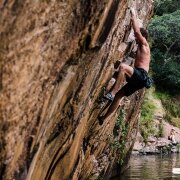 Deep water soloing is a relatively new form of climbing where climbers make their way up a rock face situated above a deep pool/river/sea of water. Climbers go without harnesses and safety equipment and when the time comes or a grip is unreachable, they just plummet into the water below and swim to safety.